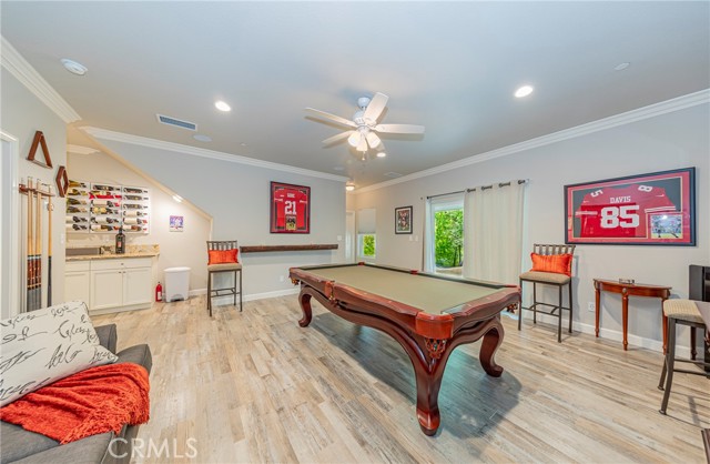 Additional highlights include a four-car deep garage with EV charging capability, RV parking, and dual driveways. The home is being sold with everything, fully furnished, TVs, sound and security systems, with the exception of the pool table and personal photos making it truly move-in ready.