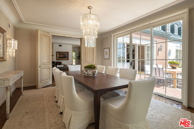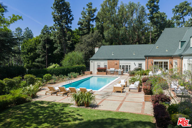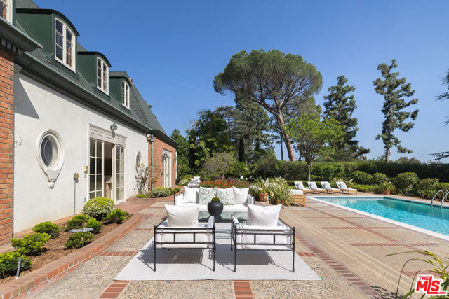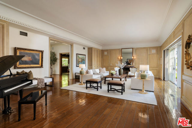 First time available in 50+ years, exceptional estate one block from Beverly Hills Hotel. Sited on 37,766 sq ft corner lot, this Regency Gem offers soaring high ceilings and is spectacular in scale. Excellent for entertaining, all public rooms open to the gardens beyond. A wood paneled library and sun lit den compliment the grand living room. Primary suite offers sitting area, two large walk-in closets and marble bath. Two additional guest bedrooms with baths en-suite and two staff bedrooms complete this rare offering. Gated motor court with ample off-street parking, vast lawns and sun-drenched pool area. Ready for the next chapter, this estate is one of the finest locations in Beverly Hills. Shown only to prequalified buyers.