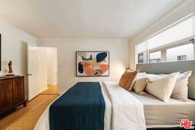 Completely renovated and move-in ready, this impressive one-bedroom condo offers an expansive 804 square feetremarkably spacious for its class. Ideally situated just two blocks from Montana Avenue and one block from Wilshire Boulevard, residents enjoy effortless access to premier dining, charming cafs, specialty markets, and boutique shopping.Bathed in natural light from its desirable southwest exposure, the home features an airy, open feel throughout. Recent upgrades include stunning new vinyl plank flooring, fresh interior paint, updated electrical outlets and switches, and refined custom hardware. The generously sized primary bedroom boasts ample closet space, complemented by a large built-in hallway cabinet perfect for linens and additional storage. Meticulously maintained and thoughtfully updated, this immaculate residence is a standout opportunity.