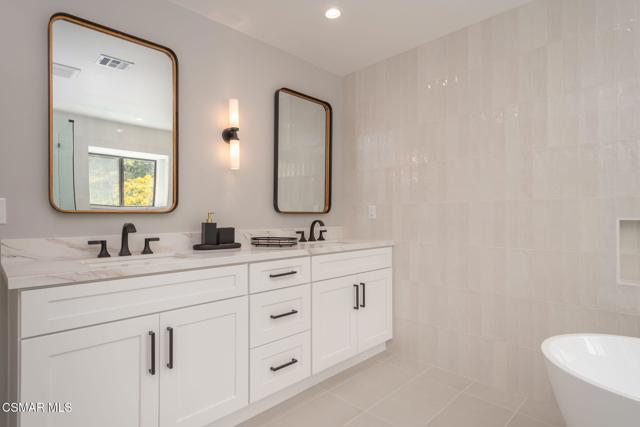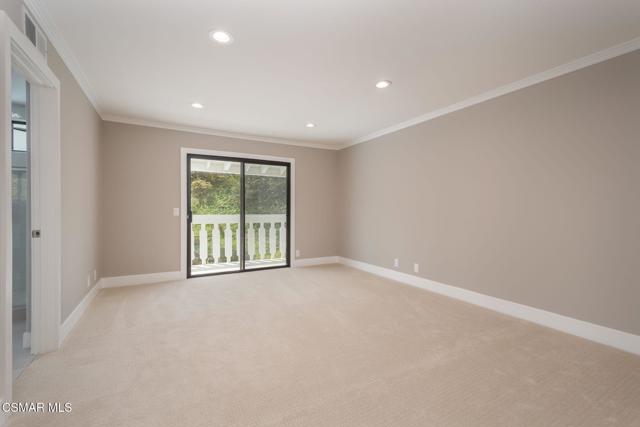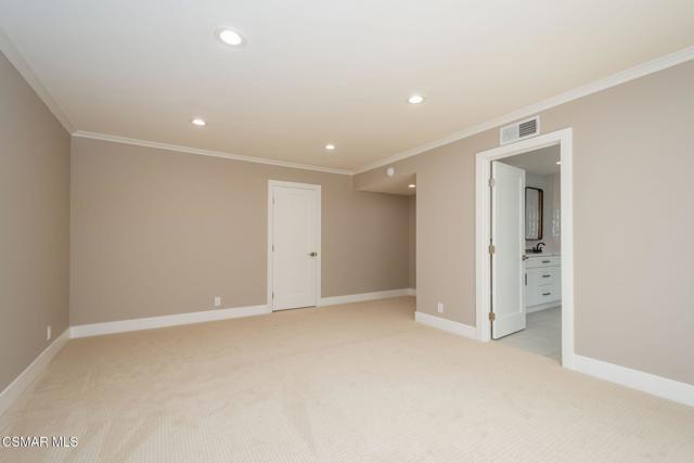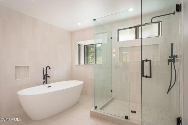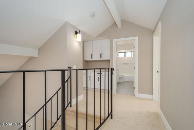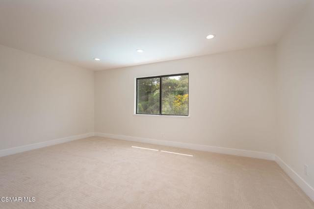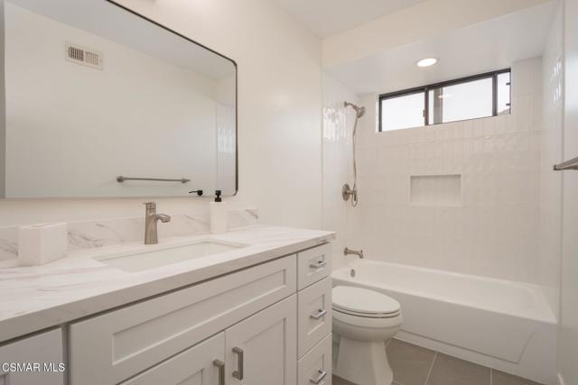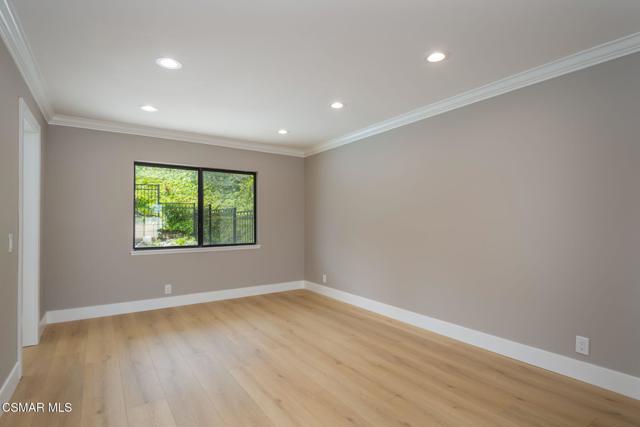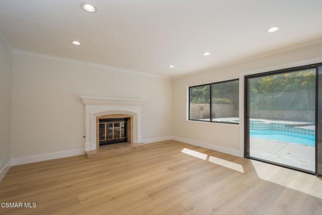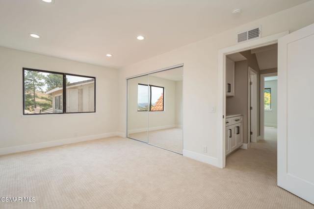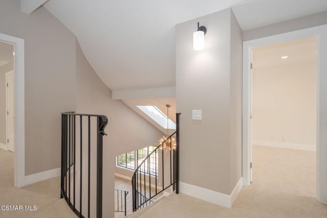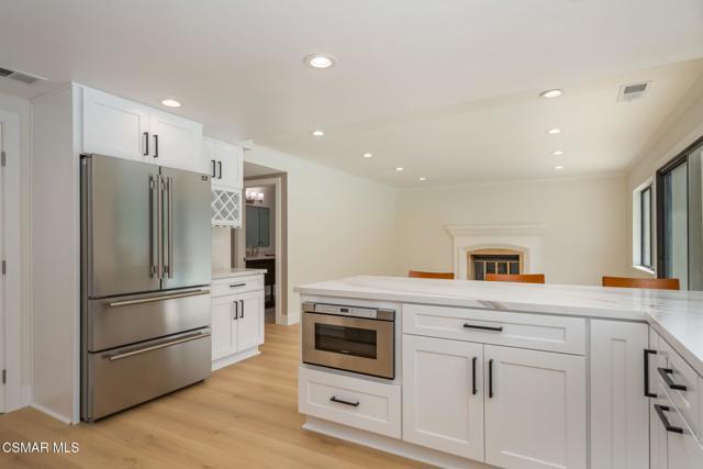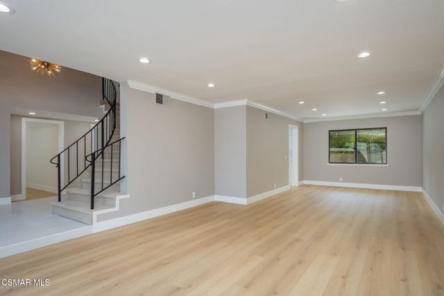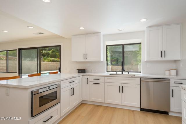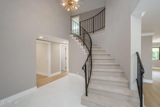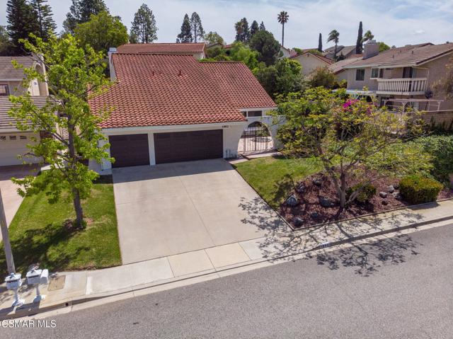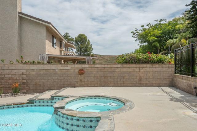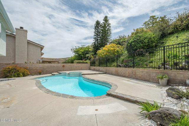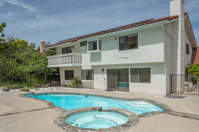 Step into this recently refurbished Thousand Oaks home situated in the highly desirable Fountainwood East neighborhood. Positioned with an excellent location, on a quiet cul-de-sac of only 7 homes. With a private gated courtyard and a well-thought-out floor plan, this home offers a dramatic spiral staircase entry with vaulted ceilings. Large spacious Living room flowing into the dining room. One bedroom downstairs with adjacent bathroom that was been fully upgraded with freestanding vanity, quartz counter-tops, tiled shower surround with glass enclosure. Spacious family room with F/P opens to the newly refurbished kitchen. The chef's kitchen offers newly installed clean white cabinetry, quartz counter-tops, tile back splash, stainless steel appliances & walk-in pantry. Recent upgrades throughout the house include laminate plank flooring, interior/exterior paint, designer carpet, interior doors, baseboards, casing, interior light fixtures, LED recessed lighting, interior outlets & switches. Three large additional bedrooms upstairs. The luxurious primary suite offers a nice relaxing balcony. The ensuite bathroom is spa-like quality and feel, offering dual vanity, soaker tub, tile shower surround with glass enclosure and fully tiled floor to ceiling walls. A refurbished hall bathroom services the two additional large upstairs bedrooms. The backyard is a entertainers delight with sparkling pool, spa and nice mature landscaping. Three car garage with newly installed garage doors, partially drywalled, newly installed rain gutters and solar panels offering energy efficiency. Low HOA. Great convenient location near parks, top rated schools, hiking trails, restaurants, shopping, golf courses & freeway access. Don't wait on this one!