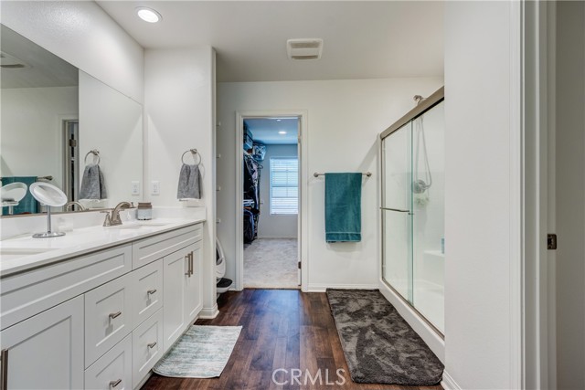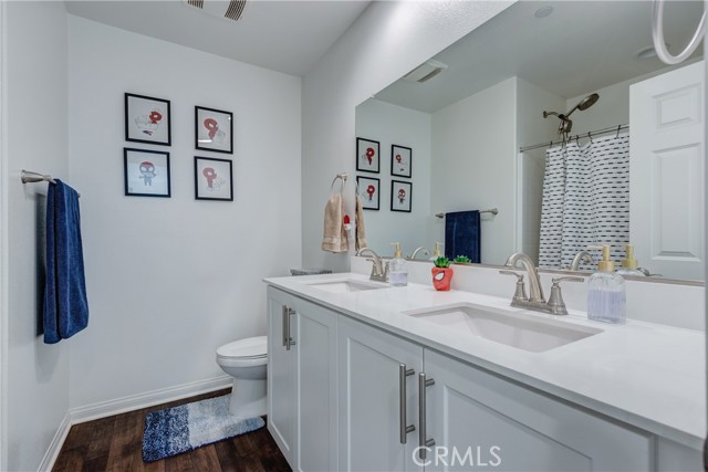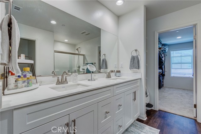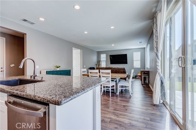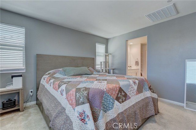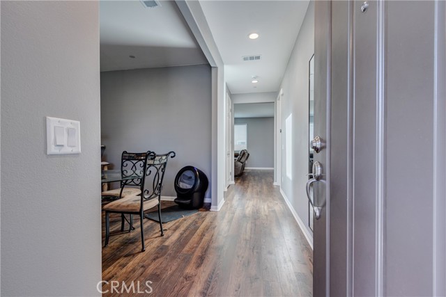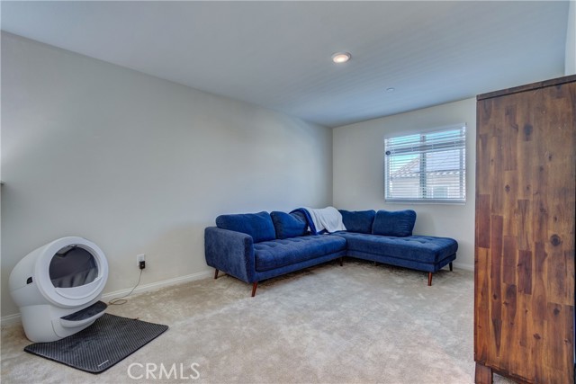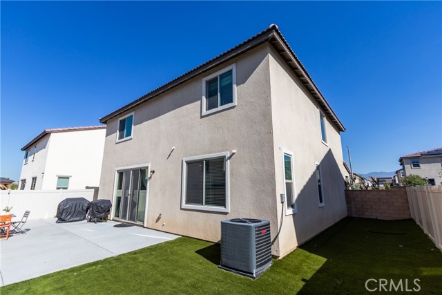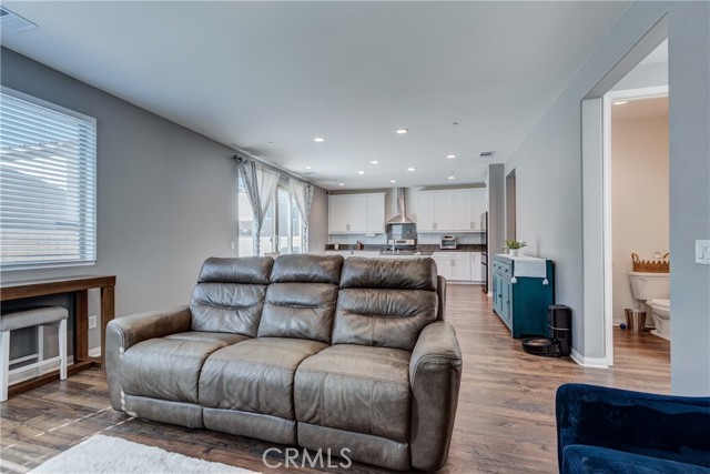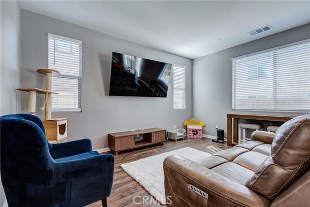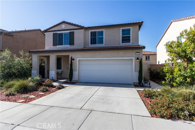 This bright home welcomes you with an open floor plan that begins with a versatile bonus room, perfect for a home office, hobby space, or formal dining area. Toward the back of the home, you’ll find a spacious great room that flows seamlessly into the dining area and a functional kitchen featuring a center island, backyard access. An open stair railing leads to the second floor, where the private owner’s suite offers a walk-in closet and an attached bathroom. Upstairs also includes a laundry area, two additional bedrooms, a full bathroom with double sinks, and a flexible loft space. The backyard is designed for easy enjoyment with a combination of concrete and turf, providing a low-maintenance space to relax, play, or entertain. Filled with natural light, this home offers generous living areas and a practical layout that makes everyday living effortless. Conveniently located near top-rated schools, with easy access to freeways 215, 10, and 210, and just minutes from grocery stores, shopping centers, and restaurants. The home is also situated within a well maintained gated community for added peace of mind.