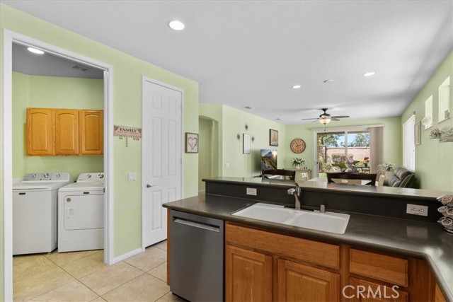 Located on a cul-de-sac street in Solera at Oak Valley Greens, a Del Webb master-planned 55+ gated community in Beaumont, this Princess model sits in a quiet setting with a greenbelt at the end of the street.