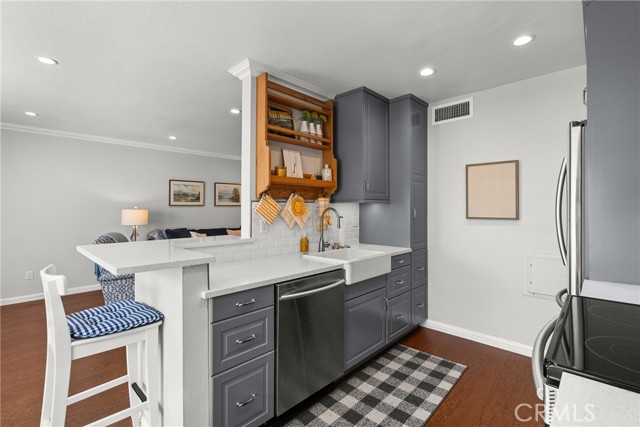 Welcome to this beautifully appointed condo in the heart of Sherman Oaks. Inside, a bright open-concept floor plan is filled with natural light, creating a warm and airy ambiance throughout. The spacious living room flows into the beautifully updated kitchen with quartz countertops and Pergo floors. Thoughtfully designed for both comfort and functionality, the space is perfect for everyday living and effortless entertaining. Step outside to your private patio—ideal for al fresco dining, morning coffee, or simply unwinding in your own tranquil setting. Ideally located within walking distance to Ventura Boulevard, you’ll enjoy effortless access to a vibrant mix of dining, shopping, and entertainment, along with nearby Trader Joe’s, Whole Foods, and convenient access to the 101 and 405 freeways. A rare opportunity to own a spacious, well-appointed condo in one of the San Fernando Valley’s most desirable neighborhoods.