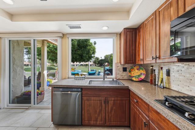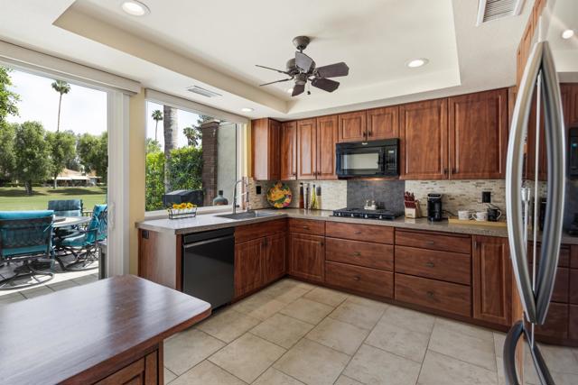 Warm & Inviting Golf Course Retreat in Monterey Country ClubWelcome to desert living at its finest in the highly sought-after Monterey Country Club--where lifestyle, comfort, and stunning views come together beautifully.This charming home offers an open, light-filled layout with upgraded dual pane windows, rich wood flooring and tile throughout, and a warm, inviting ambiance the moment you walk in. The spacious living room features a stacked stone gas fireplace and a dramatic infinity-style opening that seamlessly connects indoor and outdoor living--leading to a cozy firepit and breathtaking golf course views.The kitchen and both bathrooms have been tastefully updated with gorgeous granite countertops and custom cabinetry, and the home is equipped with all-new appliances, including an LG dishwasher, gas range, oven, and microwave--making it truly move-in ready.Comfort and efficiency are top of mind with an A/C system just 18 months old, while the garage is a standout feature of its own--complete with a custom-finished floor, split A/C, insulated attic, pull-down ladder, and built-in workbenches perfect for projects or storage. Guest Bedroom has IKEA cabinetry that provides lots of extra storage.Step outside and enjoy peaceful mornings and relaxing evenings overlooking the fairway--this is desert living done right.Residents of Monterey Country Club enjoy an unmatched resort lifestyle featuring:27 holes of Ted Robinson-designed golf33 pickleball courtsTennis, bocce, and fitness centerClubhouse dining and vibrant social sceneGuard-gated security and beautifully maintained groundsAll just minutes from the world-class shopping and dining of El Paseo.This is more than a home--it's a lifestyle. Come experience the best of Palm Desert living. Come see this beauty and make it your own!! Offered at $549,000. Owners are licensed Real Estate Agents.