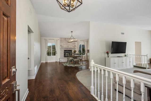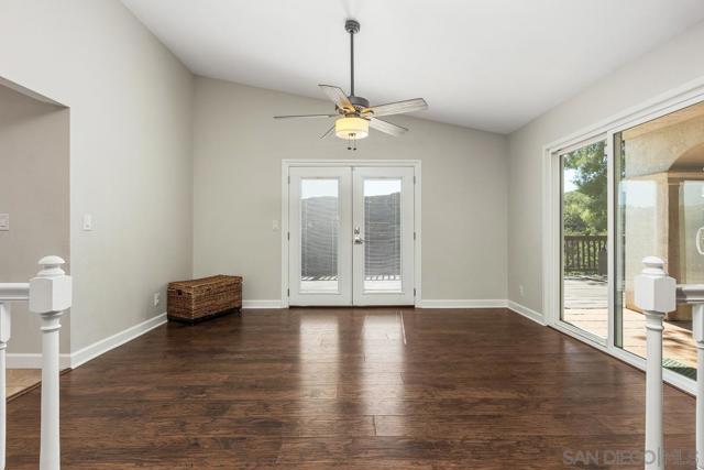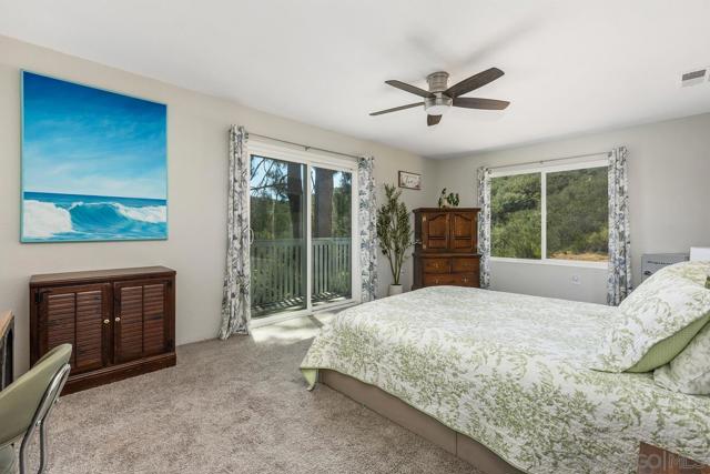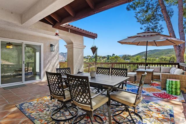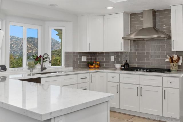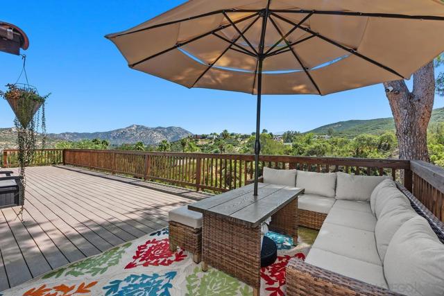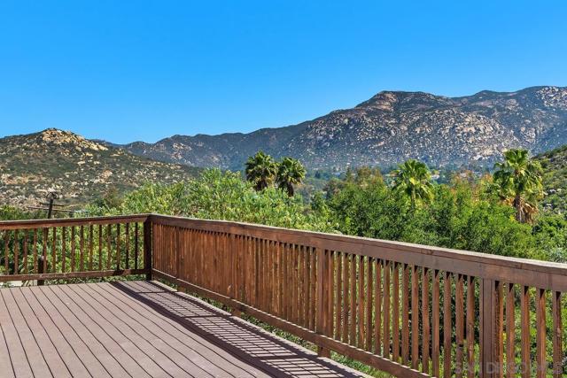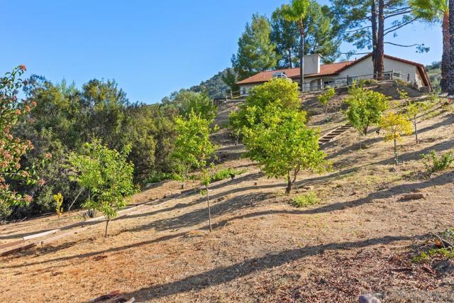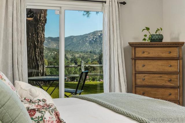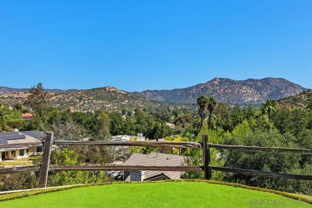 Perched in the scenic hills of Ramona’s desirable SDCEA community, this home offers privacy, versatility, and stunning mountain views. Elevated above the street, this home enjoys a peaceful, retreat-like setting while remaining close to everyday conveniences. The main home features a beautifully remodeled kitchen with shaker-style white cabinetry, quartzite countertops, and stainless steel appliances—perfect for both daily living and entertaining. The inviting living space is highlighted by a stately white-washed brick fireplace, adding warmth and timeless character. The spacious primary suite serves as a true retreat, complete with a designer bathroom featuring dual sinks, custom tile work, and large professionally designed walk-in closets. A standout feature is the approximately 400 sq ft granny flat above the garage, offering incredible flexibility for guests, multigenerational living, or a private work-from-home setup. With the potential to add a kitchenette, this space could easily become a fully rentable unit. The grounds are a true highlight, showcasing a diverse collection of producing and soon-to-produce fruit trees, creating your own private garden oasis. Outdoor living is elevated with a charming loggia, perfect for relaxing or hosting memorable outdoor movie nights . Fully owned solar system provides substantial long-term energy savings and even generated income last year, helping offset or eliminate typical SDG&E utility costs. The expansive grounds are thoughtfully landscaped and feature an impressive variety of mature and developing fruit trees, including peaches, plums, lemons, blood oranges, navel oranges, pummelo, cherries, apples, guava, dragon fruit, and grapevines—offering year-round enjoyment and seasonal harvests. Outdoor living is enhanced by multiple usable spaces, including a covered loggia ideal for dining, entertaining, or relaxing evenings. The sellers have created a unique outdoor movie setup here and plan to leave the entertainment system, making it a turnkey experience for gatherings. The granny flat above the garage (~400 sq ft) adds exceptional versatility, currently used as dual home offices but easily adaptable for guests, rental income, or multigenerational living. With the option to add a kitchenette, it can function as a fully independent (and potentially a rental) unit. Located within the San Diego Country Estates (SDCEA), residents enjoy access to a wide range of amenities and a strong sense of community. The neighborhood includes two elementary schools, a convenient local coffee shop, and nearby everyday essentials. Outdoor enthusiasts will appreciate the proximity to scenic hiking and riding trails, while wine lovers can explore the many local wineries just minutes away. Just a short drive brings you to the charming historic town of Julian, known for its seasonal apple picking, fresh pies, and year-round small-town appeal. This location offers the perfect balance of rural tranquility, community amenities, and easy access to recreation, dining, and local attractions.