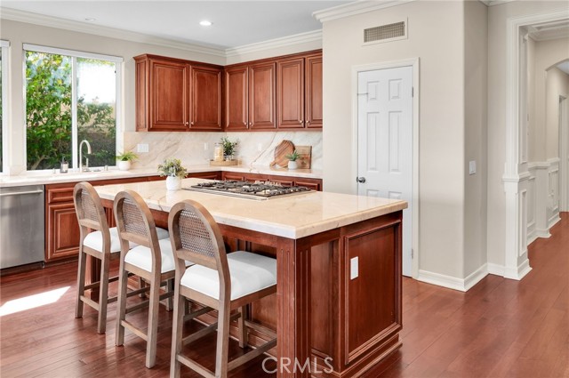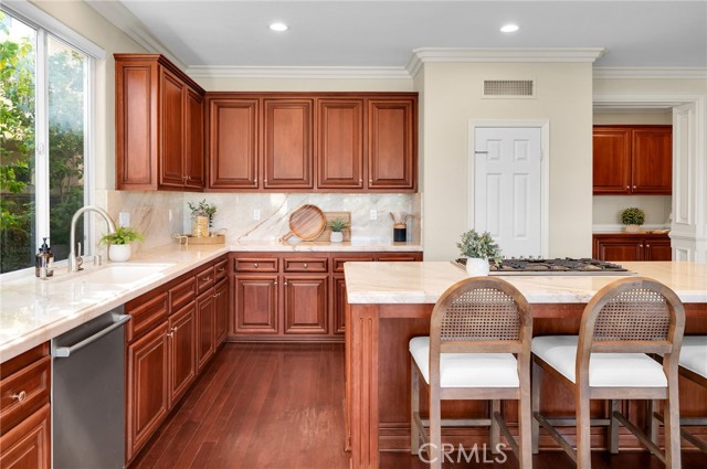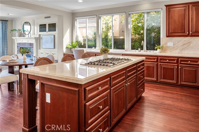 5 spacious bedrooms and 4 full bathrooms, this expansive floor plan also includes a dedicated office, ideal for working from home or creating a private retreat and a main floor bedroom and full bath. The home features formal living and dining rooms that provide a refined space for entertaining that opens up to a perched view of the yard and homes beneath, while the heart of the home is a large kitchen with an adjoining dining area and inviting family room—perfect for everyday living and gatherings.