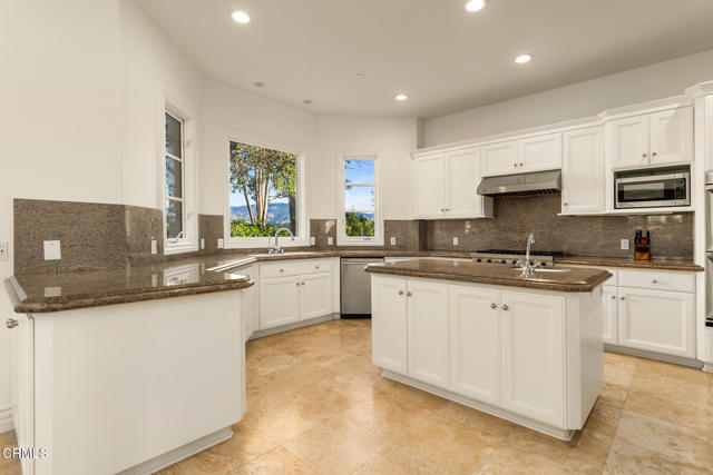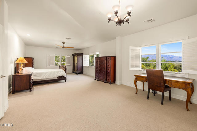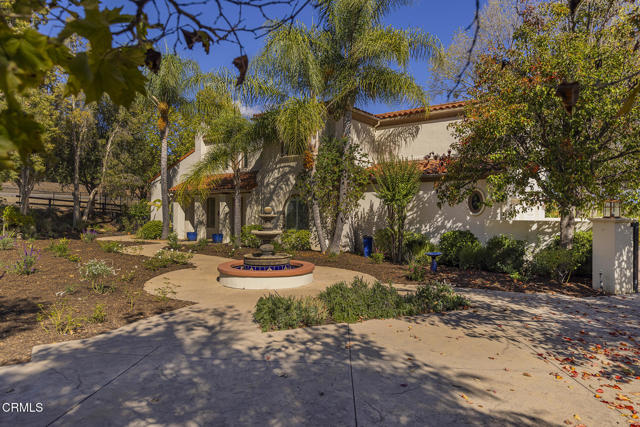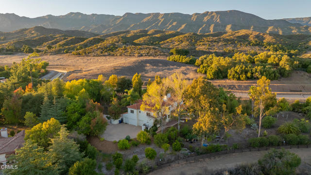 Elegant Mediterranean Estate - Located in the exclusive gated community of Rancho Matilija, this stunning home captures the serene beauty of Ojai with vistas from every angle. Bordered by the Ojai Land Conservancy and Ventura River, the property offers unmatched privacy and direct access to equestrian and pedestrian trails leading to the Los Padres National Forest and surrounding neighborhood paths. Enjoy sweeping views of the Ojai Valley and the iconic Topa Topa Mountains, the home features five spacious bedrooms and five bathrooms, including a primary suite with stunning views, a luxurious en-suite bathroom, and a large walk-in closet. Designed with comfort and style in mind, the open floor plan includes travertine flooring in the entry and kitchen, solid hardwood in main living areas, and three inviting fireplaces. Additional features include a three-car garage and an EV charger.Set on almost 3 acres with a vast variety of plants and trees including: citrus, palm, and olive trees, the backyard offers a tranquil escape with breathtaking views of Ojai's famous Pink Moment. Just minutes from Lake Casitas, downtown Ojai, and top private schools, the property is also within easy reach of Ventura, Carpentaria, Santa Barbara, and Los Angeles.Also available for lease for $14,500/month