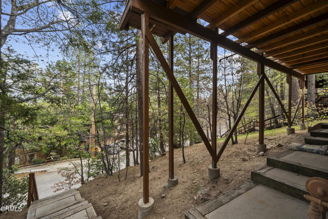 Welcome to a charming and quiet mountain getaway for your family vacations, short-term rental opportunities or investment potential. Lake rights, peek-a-boo lake views, stunning ridgeline views, flexible layout and plenty of parking--this is the one you've been waiting for! A rare and cozy four bedroom cabin nestled in beautiful Arrowhead Woods, the layout features two bedrooms and one full bathroom on each level, making it ideal for dual living, guest accommodations, or extended stays. Sleeps nine people comfortably in beds--perfect for large or multiple families. Even has a twin-over-full bunk bed for the kids!Each floor has plenty of natural light streaming in from large sliding doors and windows that look out over mountain views. Kitchen features newer fridge, stove and dishwasher. Separate entrances to each level create an exciting opportunity for flexible, income-producing potential--perfect for investors looking to maximize the property. Downstairs, you'll find a built-in bar and additional entertaining space, adding even more value and appeal for hosting and guests. Home is being offered fully furnished, making it truly move-in ready--just bring your bags and start enjoying. A turnkey opportunity with immediate usability--ideal for those looking to start enjoying or generating value right away.The recently reinforced, upgraded and waterproofed decks are perfectly positioned to soak in the scenery, whether you're enjoying your morning coffee or unwinding at sunset. Other recent upgrades include: completely rebuilt electrical panel, complete renovation of attic and crawlspace with rodent-proofing and brand new R-38 insulation and foundation stabilization with carbon fiber concrete stitching. Located just minutes from the Village and the lake, in one of Lake Arrowhead Woods' most desirable neighborhoods. High-demand location for both full-time living and vacation stays, with close proximity to dining, shopping, and year-round recreation. Whether you're looking for a full-time home, weekend escape, or investment opportunity, this property offers a rare combination of lifestyle and versatility!