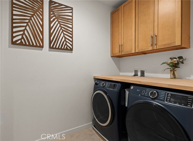 Upstairs, the primary suite includes a fully upgraded bathroom with a floor-to-ceiling tiled shower and thoughtfully enhanced hardware. Additional features include ceiling fans with multiple speeds and dimming in all bedrooms and living areas, Roman blackout shades throughout, and a well-appointed laundry room with butcher block counters, Kraft Maid cabinetry, and a wall-mounted retractable drying line.