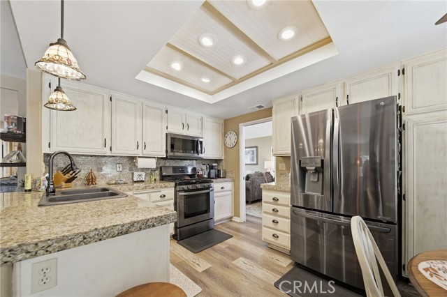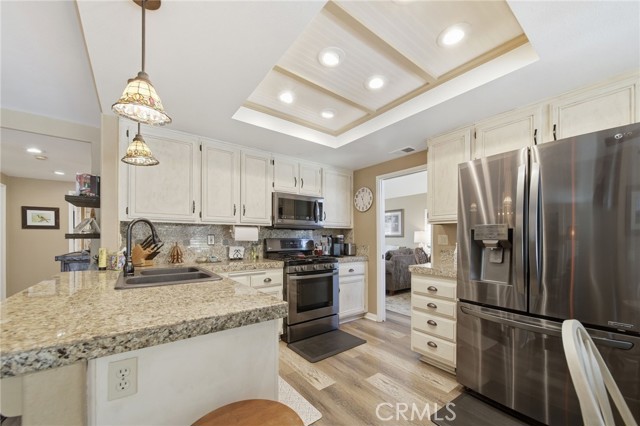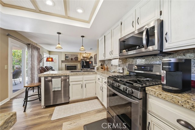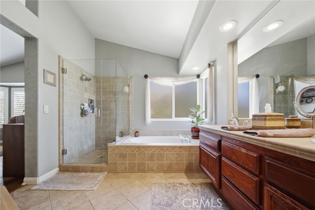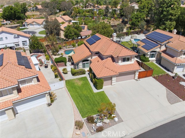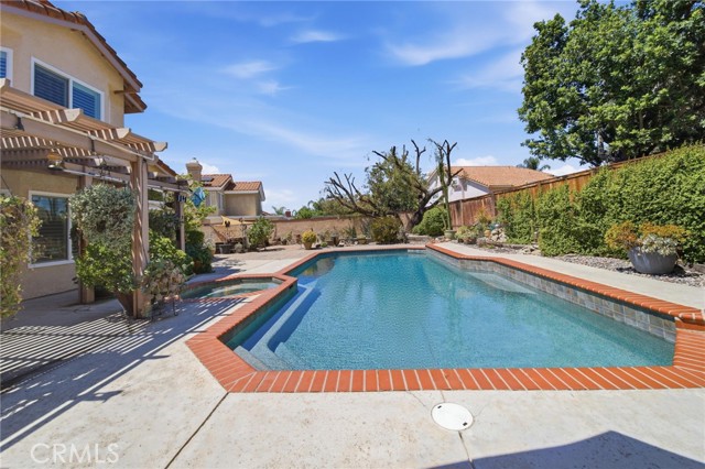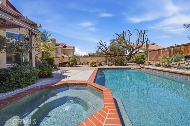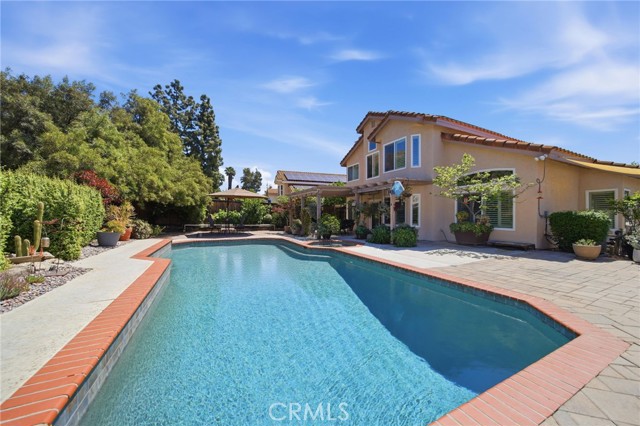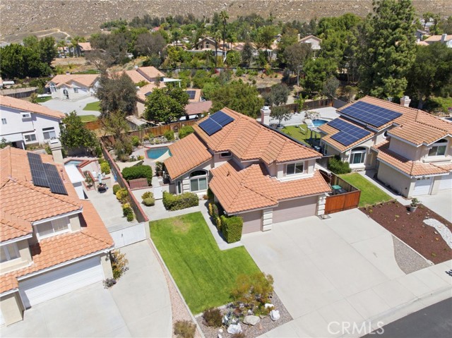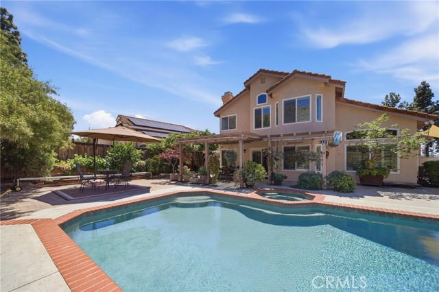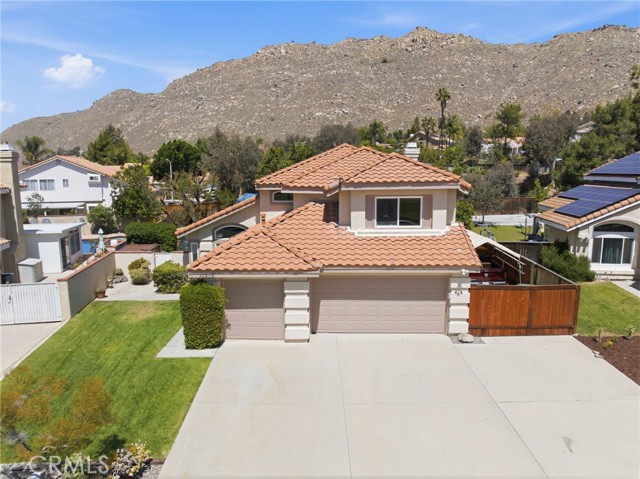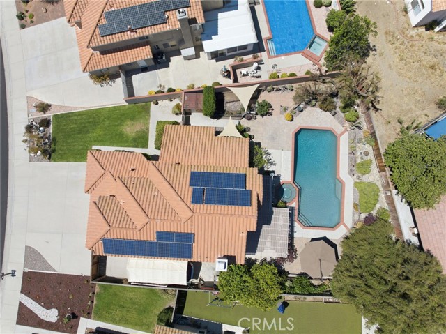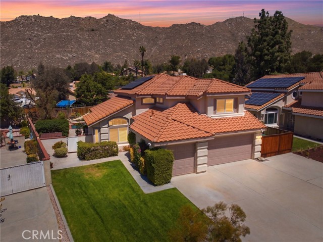 Experience Elevated Living: Pool Home with Paid-Off Solar & Breathtaking Mountain Views! Welcome to 11516 Wordsworth Rd, a pristine sanctuary nestled in the highly sought-after foothills of Northern Moreno Valley. This impeccably maintained 2-story residence offers the perfect blend of energy efficiency, modern upgrades, and an outdoor oasis designed for the ultimate California lifestyle. Step inside to a light-filled floor plan characterized by soaring vaulted ceilings and elegant wood-look flooring. The formal living and dining areas flow seamlessly toward the heart of the home: a chef-inspired kitchen. Featuring white cabinetry with sleek dark hardware, premium granite countertops, and a full suite of stainless steel appliances, this kitchen is as functional as it is beautiful. Enjoy the unique tray-ceiling detail with recessed lighting and stylish pendant fixtures over the breakfast bar. Retreat to a spacious primary suite featuring vaulted ceilings and a spa-like ensuite bath. Indulge in the soaking tub situated under large windows, or enjoy the custom-tiled walk-in glass shower and dual-sink vanity. Your private resort awaits! The sprawling backyard is an entertainer's dream, featuring a sparkling in-ground pool and elevated spa accented with classic brick coping. Relax under the expansive wood-style patio cover, surrounded by lush landscaping and framed by stunning, unobstructed views of the Box Springs Mountains.