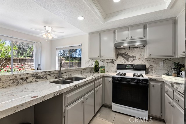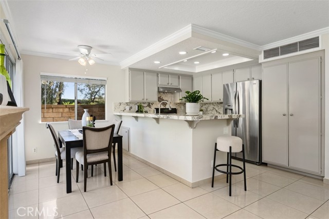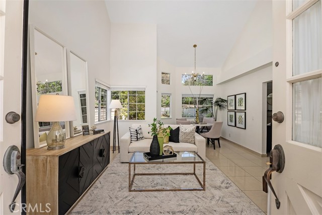 Welcome to the highly sought-after community of Robinson Ranch/Trabuco Highlands, nestled at the base of the Saddleback Mountains. This two-story Trabuco Homestead residence is ideally situated on a quiet cul-de-sac and offers 3 bedrooms, 2.5 bathrooms, and approximately 1,529 sqft. of comfortable, well designed living space. Step through the double front doors into a spacious living and dining area with soaring ceilings that create an immediate sense of openness and light. The heart of the home is the stunning chef’s kitchen, newly remodeled with granite counters, stainless steel appliances, recessed lighting, ample prep space, and a convenient bar top perfect for both everyday living and entertaining, all with views to the backyard. The fireplace complements the open-concept floorplan, creating a warm and inviting atmosphere.