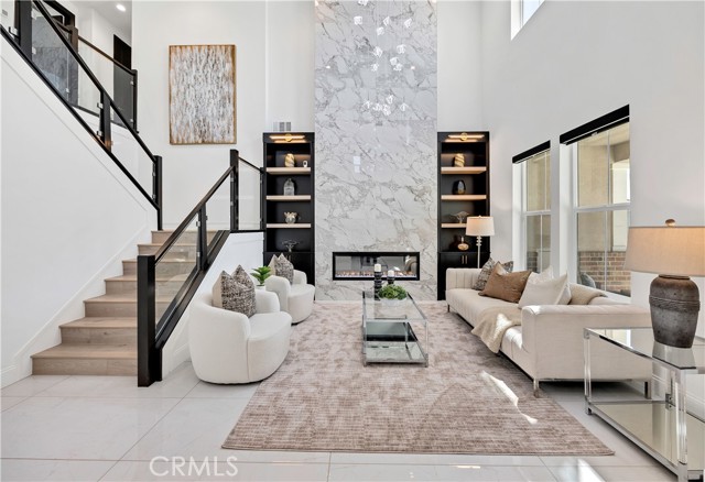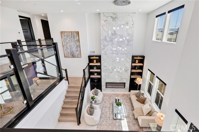 Clean architectural lines are elevated by soaring volume, designer lighting, and a striking two-tier open glass railing system- a highly sought-after upgrade that few homeowners elected to complete- creating a sense of openness and modern sophistication rarely found in the community.
