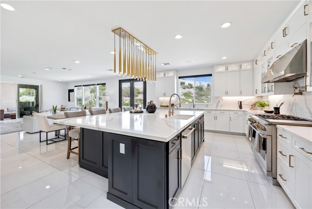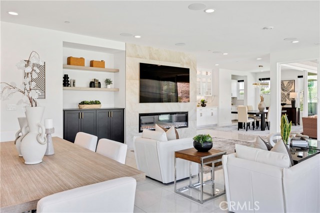 At the heart of the home, a chef’s kitchen is appointed with the Monogram Statement Collection, including a 48” professional range, double smart wall ovens, and built-in refrigerator, seamlessly integrated into an expansive layout designed for both everyday living and elevated entertaining.