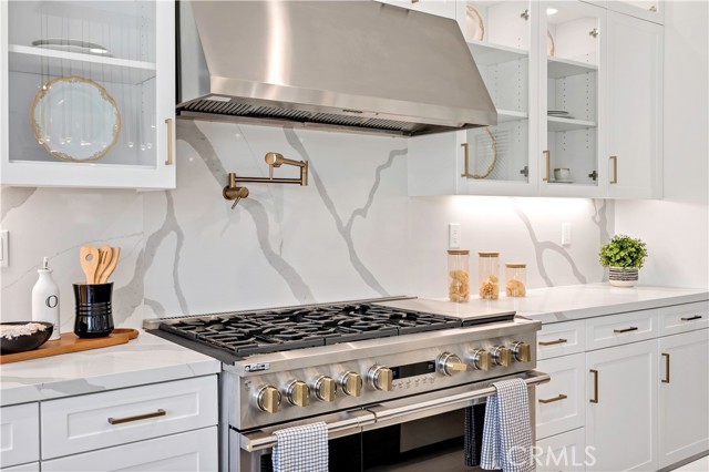 Custom cabinetry extends throughout the home with soft-close dovetail construction, glass display cabinetry, and thoughtfully designed built-ins that bring both beauty and utility to every space.
