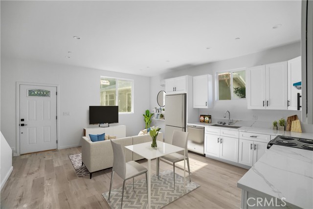 The main residence welcomes you with an expansive living space and highlights updated vinyl flooring, recessed lighting, and a fresh, modern palette. The kitchen feels refined and functional with gorgeous countertops and its own private area. Each additional unit is newly constructed with stunning, quartz countertops, new kitchen cabinetry, sturdy bathroom vanities new bathroom tile, and a seamless flow into the living and dining areas, designed for everyday comfort and effortless entertaining. The ADUs also highlight open-concept layouts, and beautiful, cohesive finishes throughout!