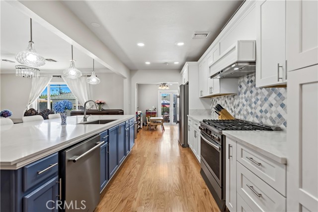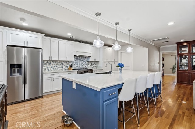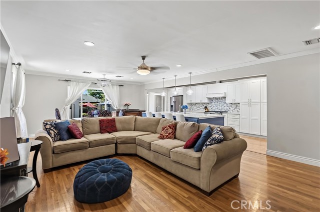 Welcome to 8384 Doris Ave., a special retreat in the heart of a quiet and friendly North San Gabriel neighborhood. This spacious 4-bedroom, 3-bathroom home features a generous 2,407 sq ft layout designed for easy living and plenty of privacy. Right as you walk in, you're greeted by a versatile living space that works perfectly as a quiet formal sitting area or a bright room for hobbies and play. The heart of the home is the open-concept living and dining area, which flows seamlessly into a beautiful kitchen remodeled in 2025. This dream space features a stunning blue backsplash, modern pendant lighting, new appliances, and an incredible walk-in pantry. A massive 11-foot island serves as the perfect centerpiece for loved ones to gather around for morning coffee or evening wine, all set upon newly updated engineered hardwood floors.
