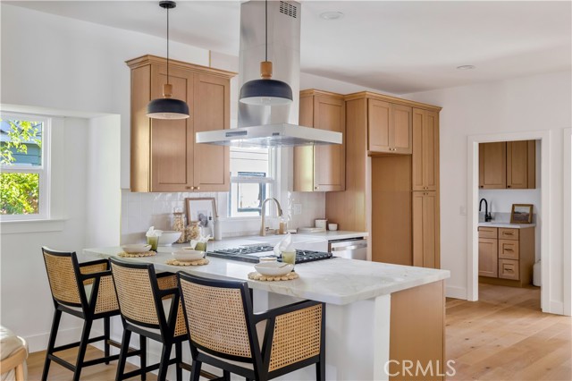Step into a perfect blend of classic Los Angeles charm and modern design at 5670 Hub Street. This 4-bedroom, 2-bath home has been completely reimagined—featuring new electrical wiring, a new electrical panel, new water supply lines, and new drains for peace of mind and long-term value. Inside, natural light fills every room, accentuating the wide-plank waterproof wood floors, open layout, and carefully chosen finishes. The living room centers around a custom-tiled fireplace and flows seamlessly into a designer kitchen with warm white oak wood cabinetry, quartz countertops, and new stainless steel appliances. The primary suite offers a serene retreat with a spa-inspired bathroom showcasing a double vanity, large tiled walk-in shower, and brushed-bronze fixtures. Each additional bedroom carries the same balance of warmth and simplicity, while the guest bath features statement tile and modern design. Outside, enjoy a landscaped front yard, a private backyard ready for gatherings, and a detached garage offering excellent ADU or studio potential (buyer to verify). Located on a quiet street just moments from York Boulevard and Figueroa Street, you’re close to Highland Park’s favorite cafés, restaurants, and boutiques—plus easy access to Pasadena, Downtown LA, and major freeways. 5670 Hub Street combines timeless character, modern upgrades, and the creative energy of one of LA’s most desirable neighborhoods—an inspired place to call home.