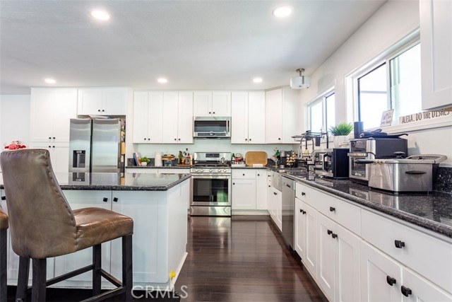 Step inside through grand double doors and be immediately greeted by soaring 9-foot ceilings that set the tone for the open, airy floor plan. The chef's kitchen has been completely reimagined, featuring premium countertops, top-of-the-line stainless steel appliances, and custom cabinetry — a true centerpiece for entertaining and everyday living alike. Elegant flooring flows seamlessly throughout, complementing the refined aesthetic found in every room.