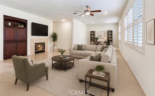 Welcome to this spacious Orangecrest home, perfectly designed for comfortable family living! Situated on a generous lot with room for a future pool, this home offers room to relax, entertain, and grow. Step inside to find fresh interior paint throughout and beautifully updated exterior trim, creating a crisp, move-in ready feel. The open-concept kitchen is the heart of the home, featuring a center island, pantry, and abundant cabinetry, all flowing seamlessly into the family room with a cozy fireplace. A sliding glass door leads to the backyard, while large windows fill the space with natural light, making the home feel bright and inviting. The flexible floor plan includes 4 bedrooms plus a large loft—perfect for a game room, office, or additional living space. Downstairs, you’ll find a full bathroom with a shower/tub combo, ideal for guests or multi-generational living, along with a convenient indoor laundry room. Upstairs, the primary suite bathroom offers a soaking tub, walk-in shower, dual sink vanities, and a spacious walk-in closet. Generously sized guest bedrooms provide comfort for everyone and a guest bathroom in the hallway with a shower / tub combination. Step outside to your expansive backyard with endless possibilities—including a charming outdoor playset, making it the perfect space for fun, relaxation, or even future pool plans. Located in a highly desirable Orangecrest neighborhood, you’ll love being within walking distance to top-rated schools, shopping, and everyday