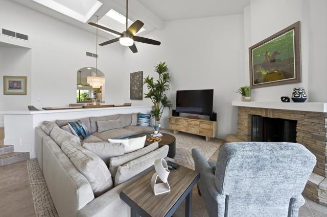 Experience the very best of La Quinta living in this stunning, fully furnished PGA West residence, where luxury, comfort, and world-class golf come together. Ideally situated on the iconic Stadium Course, this exceptional home offers a rare front-row seat to the American Express Golf Tournament--enjoy it all from the privacy of your own patio.Thoughtfully renovated and beautifully appointed, this home showcases two spacious master suites with impeccably remodeled bathrooms, sleek new flooring throughout, and an advanced HVAC system with premium air filtration for year-round comfort.The chef-inspired kitchen is both stylish and functional, featuring elegant Cambria countertops, a central island, skylights, and abundant natural light. Outfitted with brand-new KitchenAid appliances, dual wine refrigerators, and a premium WaterDrop water filtration system, it's perfectly designed for both everyday living and effortless entertaining. A charming breakfast nook and convenient pass-through bar seamlessly connect the kitchen to the dining area.Designed with comfort in mind, the home features Sleep Number king-size beds in the primary suite and adjustable Tempur-Pedic beds in the guest room, ensuring a personalized sleep experience for you and your guests. New flat-screen TVs in both master bedrooms and the living room, along with new Hunter ceiling fans throughout, add modern convenience and style. Hunter Douglas power blinds in the living room and primary suite provide both privacy and effortless light control.The expansive living room boasts high ceilings, a cozy new fireplace and mantle, and a large sliding glass door that opens to breathtaking golf course views. A sunken bar and oversized patio create the perfect setting for entertaining or simply relaxing while enjoying the desert lifestyle.This home also offers the ease of HOA-covered amenities, including 24/7 guard-gated security, cable, internet, roof, exterior maintenance, and beautifully maintained landscaping. Just steps away, a tranquil community pool and spa provide a peaceful retreat.This is a rare opportunity to own a turnkey, resort-style home in one of the Coachella Valley's most sought-after destinations. Whether you're seeking a full-time residence, vacation home, or investment property, this exceptional PGA West retreat delivers on every level.Your desert dream lifestyle starts here.