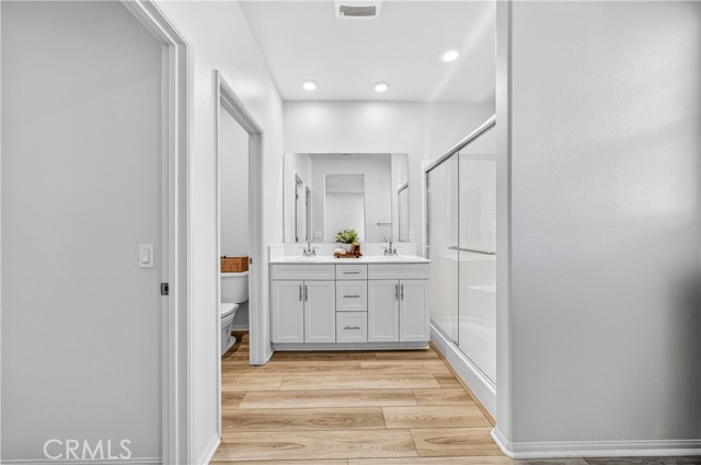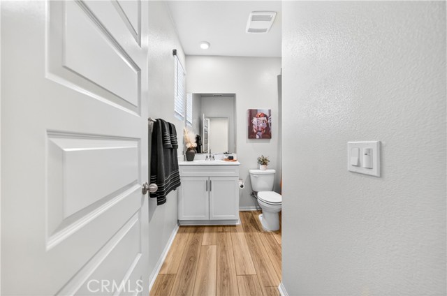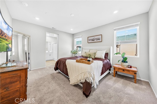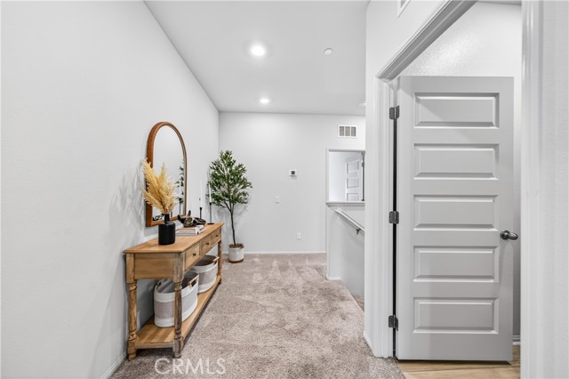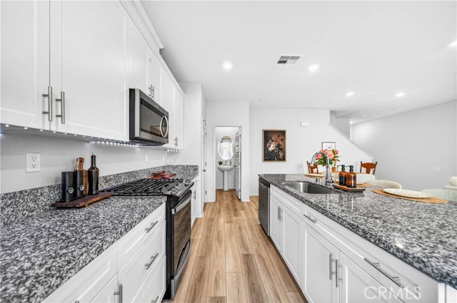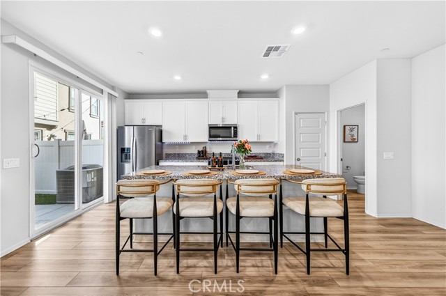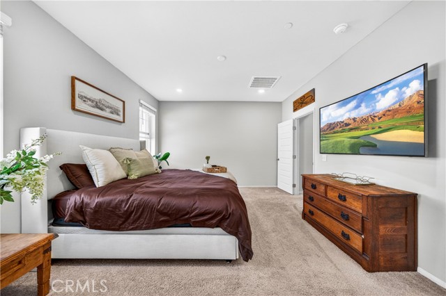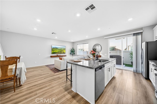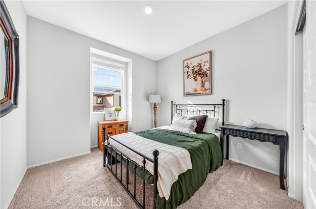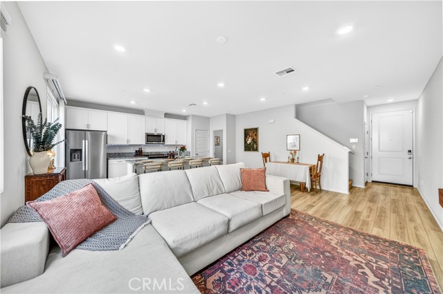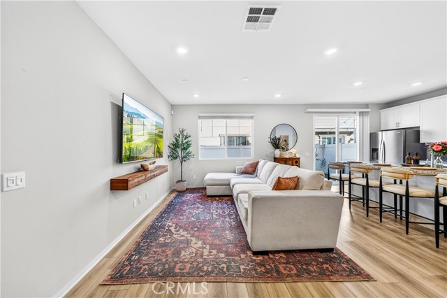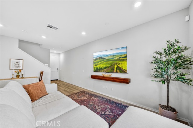 MOVE-IN READY CONDO IN HEIRLOOM FARMS WITH SOLAR! Welcome to this modern 3 bedroom, 2.5 bathroom condominium located in the highly desirable Heirloom Farms community of Temecula. Offering approximately 1,504 sq ft of living space and a backyard, along with a 2-car attached garage and energy-efficient upgrades throughout. The main living area features a bright, open-concept layout with seamless flow between the kitchen, dining, and living spaces. The kitchen is well-appointed with white cabinetry, granite countertops, EVP flooring, and Whirlpool stainless steel appliances. A convenient half bath and private backyard complete the main level, ideal for everyday living and entertaining. Upstairs, the home offers three spacious bedrooms, including a primary suite with ample closet space and an en-suite bathroom. Additional features include retractable blinds throughout, a tankless water heater, and smart home technology, including a SafeStreet security system, plus keypad entry with remote access.