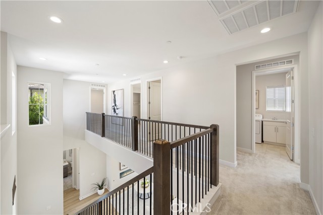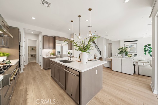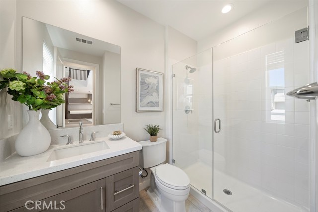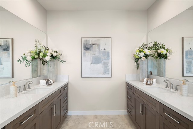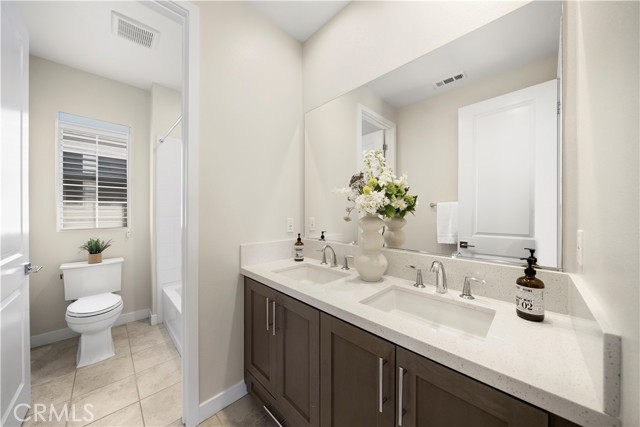 Lies right by the Oaks park and has no neighbor on the side, the two-story single family house, nestled in the Meadows community, built by Toll Brothers. 4 bedrooms and 4 full bathrooms. 1 bedroom and 1 full bathroom are on the first floor, and the master room and the other 2 more suite rooms and the spacious LOFT are on the second floor. Upon entering, you will be welcomed by a two-story HIGH CEILING foyer which makes a sense of openness and luxury. The large kitchen, which is open to the living room, features quartz countertops and the island with the upgraded cabinets, JENN-AIR appliances including a 48” built-in refrigerator. While entering from the garage, you can see the drop zone with cabinets and countertop and the large walk-in pantry which provides more convenience and more storage. Beautiful vinyl flooring downstairs and carpet upstairs. A lot of windows allows plenty of brightness and daylight all over the house. The big slide doors lead you to the covered California Room which provides a cozy area for you to take a seat or meet your friends while enjoying a green view in the backyard. Other features include the oversized two car garage and fully paid off solar panels. Talking of the Resort-style amenities in the Meadows, the community has a very gorgeous and contemporary club house, two pools, two spas, 12 acres of parks, sports fields, and basketball, pickleball, sand volleyball courts and the dog park. With more than 10 acres open space and trails connecting to the Serrano Creek regional trails system. You can enjoy a convenient life here with the nearby shopping centers such as Foothill Town Center, Home Depot, and various restaurants just across the street. These shopping and dining options ensure that all your daily needs are easily met. Plus, no Mello Roos and Low HOA fee.