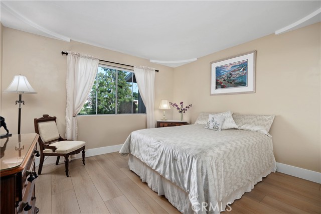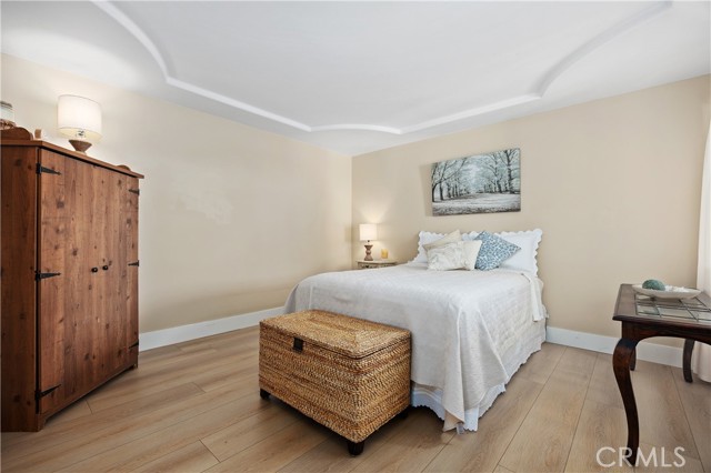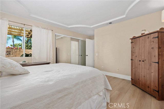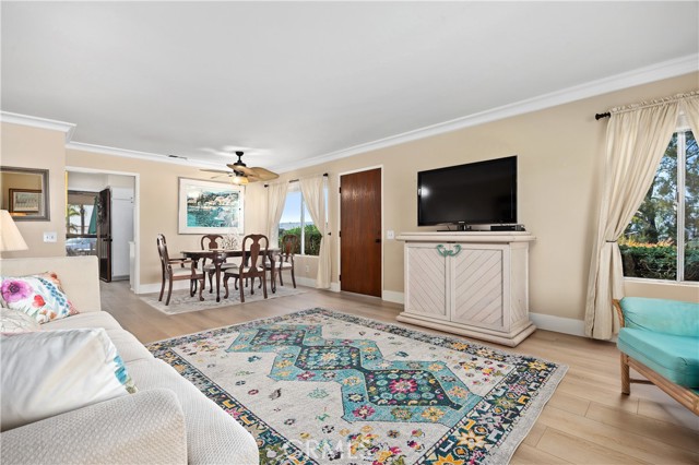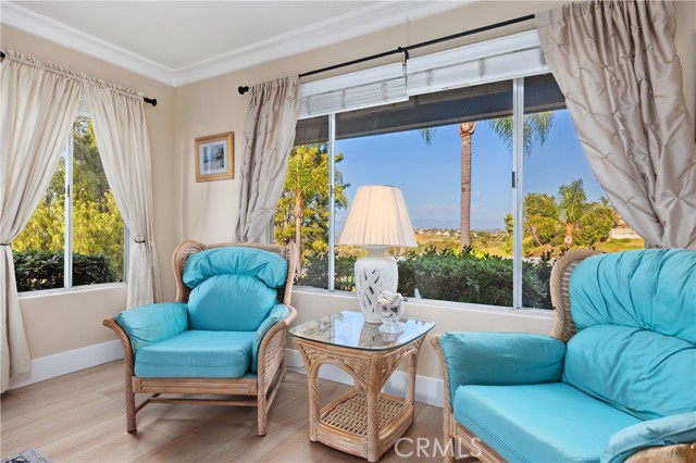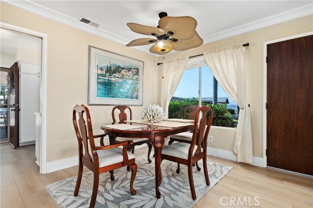 This beautifully maintained single-story, end-unit home is located in the highly desirable 55+ Oceana Mission II community. It sits on a large corner lot, with a spacious lawn and meticulously landscaped grounds. Enjoy stunning views of the scenic mountain ranges to the north and east, including Palomar Mountain, along with refreshing ocean breezes and an ideal coastal climate year-round. The interior features waterproof laminate flooring and updated baseboards (both less than two years old), plus ceramic tile in the bathroom floors. Crown molding adds an elegant touch to the living and dining areas as well as both bedrooms. Mirrored closet doors enhance the sense of space and light in each bedroom. The primary bathroom includes a large walk-in shower with a built-in bench, while the secondary bathroom offers a shower/tub combination and was fully remodeled within the past two years. The interior of the home has also been freshly painted within that time frame. An outdoor patio—currently used as additional living space—connects directly to the kitchen and offers flexibility, as it can be converted into a covered carport, if desired. The patio also provides direct access to the one-car, enclosed garage, which includes ample storage along with additional attic space. All appliances convey with the sale, including the refrigerator, washer, and dryer. The roof was replaced by the HOA in 2024. Guest parking is conveniently located nearby, and the community clubhouse is just a short walk away. Residents enjoy access to a pool, spa, and a variety of social activities throughout the year. The home is ideally situated less than one mile from shopping and dining near Highway 76, and it is just a short ten-minute drive to Interstate 5 and downtown Oceanside. The nearby harbor and beaches offer many recreational opportunities and exciting coastal entertainment.
