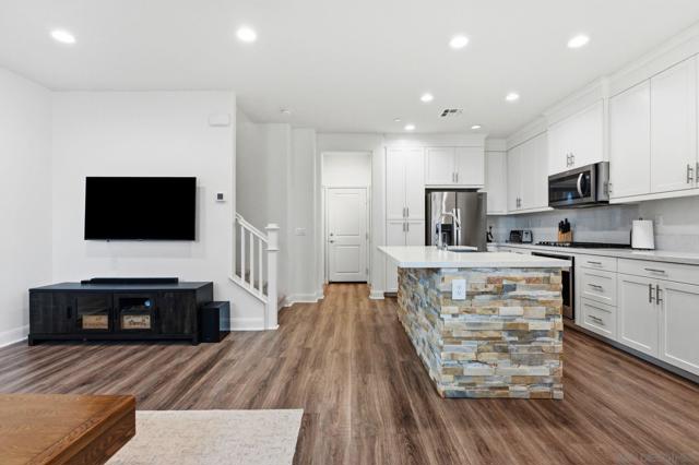 Stunning 3BR/2.5BA 2 modern townhome built in 2021 by D.R. Horton, ideally located just minutes from shopping, dining, and Cal. State University San Marcos. This move-in ready home features an open-concept floor plan with luxe vinyl plank flooring, stainless steel appliances, tankless water heater, and an oversized island with custom stacked stone detail. Upstairs loft offers flexible space for office, media room, or playroom. Private courtyard perfect for relaxing or entertaining. Oversized 2-car garage with extensive built-in storage. Racks, Gated community amenities include pool, clubhouse, tot lot, EV charging stations, and ample guest parking. TURNKEY and beautifully upgraded throughout! Stunning 3BR/2.5BA 2 modern townhome built in 2021 by D.R. Horton, ideally located just minutes from shopping, dining, and Cal. State University San Marcos. This move-in ready home features an open-concept floor plan with luxe vinyl plank flooring, stainless steel appliances, tankless water heater, and an oversized island with custom stacked stone detail. Upstairs loft offers flexible space for office, media room, or playroom. Private courtyard perfect for relaxing or entertaining. Oversized 2-car garage with extensive built-in storage. Racks, Gated community amenities include pool, clubhouse, tot lot, EV charging stations, and ample guest parking. TURNKEY and beautifully upgraded throughout!