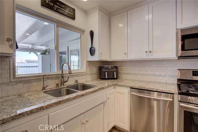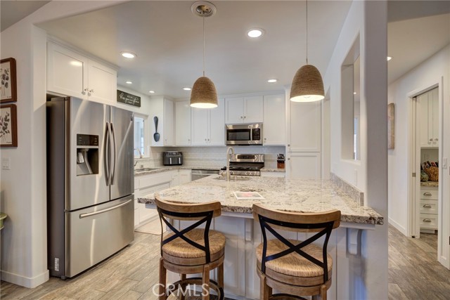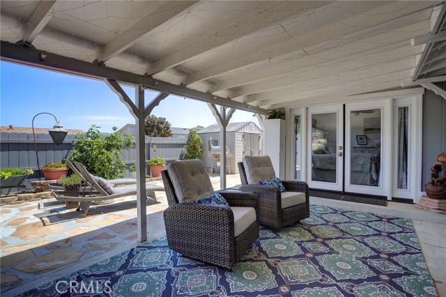 Turn-key and completely remodeled 3BD/2BA home offering ~1,500 sq ft on one of the largest corner lots in Casa Del Rio 55+ community. This single-level residence delivers the ultimate indoor-outdoor lifestyle with a fully fenced, private backyard oasis featuring a covered patio showcasing stunning Santa Maria Hills views, TV and shade panels, flagstone patio, gas line for fire pit, garden areas, shed, pet-friendly features, and mature fruit trees including dwarf avocado, fig, and lemon. Inside, enjoy high ceilings, skylights, and abundant natural light throughout. The open great room with French doors flows seamlessly to the backyard. The beautifully upgraded kitchen features granite countertops, white shaker cabinetry, stainless steel appliances, a center island with prep sink, breakfast bar, and a butler’s pantry with coffee and beverage station. The primary suite includes French doors to the patio, dual closets, and a spa-like bathroom with soaking tub, walk-in shower, dual sinks, and granite finishes. Two additional bedrooms include one currently used as an office with built-ins. Guest bath offers a tub/shower combo and matching upgrades. Oversized 2-car garage features epoxy floors, utility sink, extensive storage, and included washer/dryer. Additional highlights include A/C, reverse osmosis system, and low-maintenance landscaping. Enjoy resort-style amenities including a renovated pool, spa, and clubhouse with active social events. Conveniently located near walking trails, freeway access, and medical facilities. Optional vehicle, RV/boat storage available through the Park.