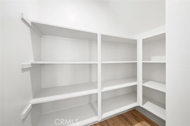 Upstairs, a charming built-in counter with storage offers a functional nook for daily living and organization.