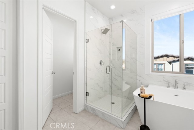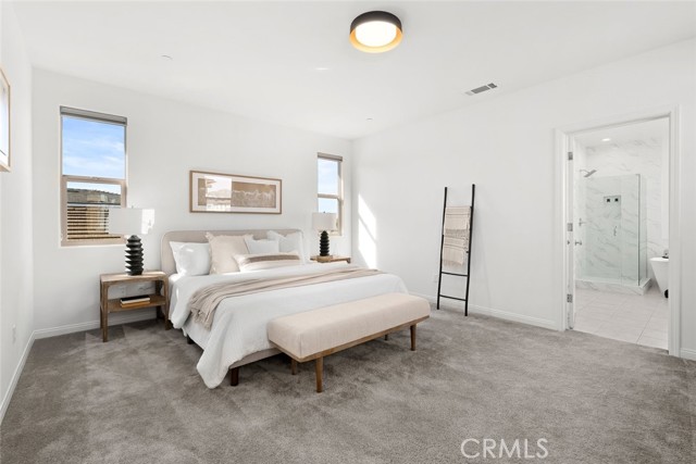 The spacious primary suite features a luxurious ensuite with a dual sink vanity, soaking tub, walk-in shower, private water closet, and generous walk-in closet. Two additional bedrooms, a full hall bathroom, and convenient upstairs laundry complete the second level.