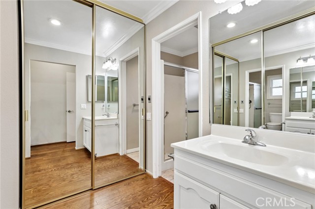 Both bedrooms feel like true suites, featuring dual mirrored closets and private bathrooms—ideal for guests or simply enjoying a little extra breathing room. And for everyday ease, a stacked LG washer and dryer in the garage adds that extra layer of convenience you didn’t know you needed (but won’t want to live without).