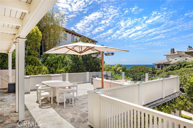 Set within the prestigious guard-gated seaside enclave of Emerald Bay, 115 Emerald Bay is a timeless coastal retreat where classic beach house charm meets an elevated, design-driven sensibility. Framed by captivating ocean views and embraced by the effortless beauty of Laguna Beach, this exceptional residence offers a rare opportunity to experience one of Southern California’s most exclusive and secure communities. Spanning approximately 2,850 square feet on a 7,405 square foot hillside lot, the four-bedroom, four-bathroom home is thoughtfully designed to capture abundant natural light and gentle ocean breezes at every turn. French doors and expansive picture windows artfully frame ocean vistas, seamlessly blending indoor and outdoor living. The heart of the home reveals a beautifully appointed kitchen, where luminous stone countertops are paired with a striking mosaic tile backsplash. A suite of professional-grade Viking appliances anchors the space, delivering both performance and polished elegance for everyday living and elevated entertaining alike. Three of the four bedrooms, including the primary, offer relaxing balcony ocean views, while the bathrooms, with curated stone detailing, evoke a serene, spa-inspired ambiance. Expansive wraparound decking extends the living spaces outward, presenting multiple vantage points to take in the shimmering horizon. Designed for effortless entertaining, the outdoor areas feature a built-in BBQ, inviting lounge spaces, a cozy fire pit, large and private rear yard with sprawling lawn. Rare ample parking is provided on the large stone driveway that leads to a two-car garage. Just moments from Emerald Bay’s private community beach, this residence embodies the essence of seaside living. 115 Emerald Bay stands as an exquisite coastal sanctuary in one of Laguna Beach’s most coveted enclaves. Residents enjoy an extraordinary lifestyle defined by privacy, security, and effortless seaside living. This iconic community is centered around a residents-only crescent beach with soft sand, calm turquoise waters, and a sheltered cove qne 4esort-style amenities, a community center, and year-round recreational programming that fosters a rare sense of community. With guard-gated access and a prime Laguna Beach setting moments from world-class dining, galleries, and shopping, Emerald Bay offers the uncommon blend of exclusivity, natural beauty, and convenience that makes it one of the most desirable places to call home.